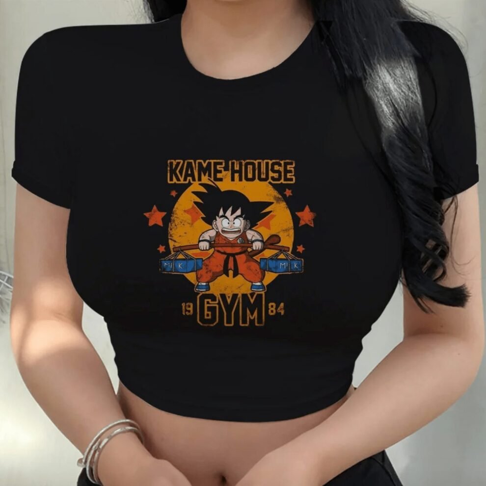 Explorez de nouveaux sommets d’entraînement avec notre Crop Top Dragon Ball Goku Gym, spécialement conçu pour les passionnés de fitness et les amateurs de Dragon Ball. Arborant une illustration inspirante de Goku, ce crop top transforme votre séance d’entraînement en une aventure Saiyan à la Kame House.