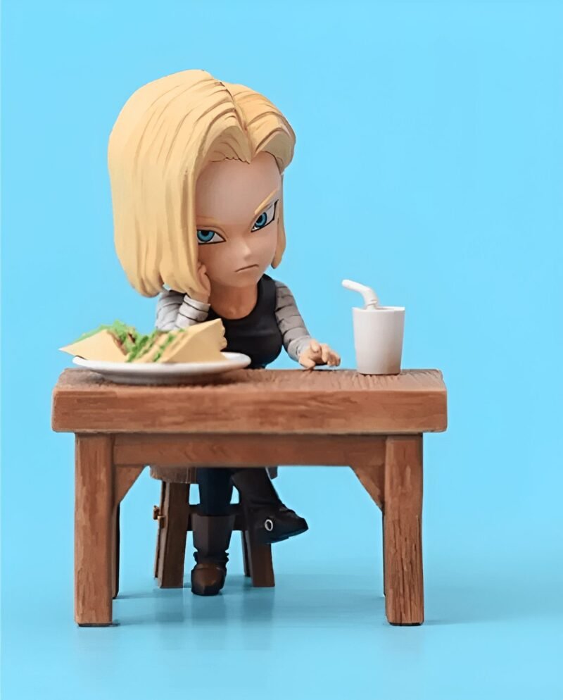 La figurine Dragon Ball C-18 Dîner capture un moment rare de tranquillité dans la vie trépidante de C-18. Assise à une table élégante, elle déguste un repas délicieux avec une expression de satisfaction sur son visage. Cette scène réaliste ajoute une dimension de vie à ce personnage emblématique, permettant aux fans de la série de la voir sous un jour nouveau.
