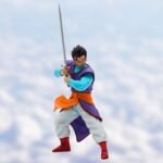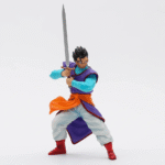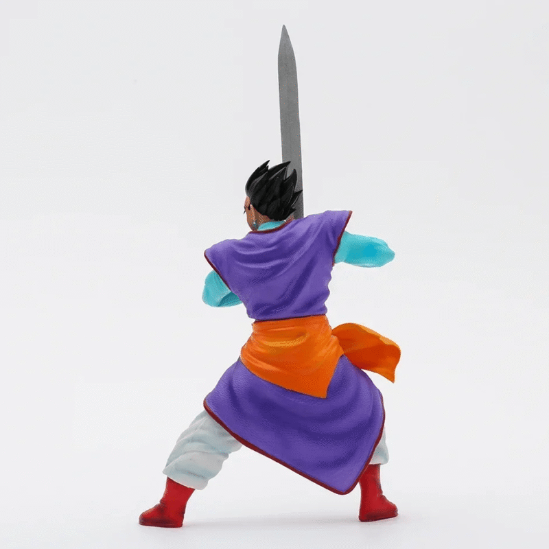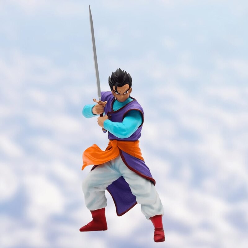 Pose Majestueuse : Gohan est superbement représenté dans une pose majestueuse, brandissant son épée avec une grâce et une puissance remarquables. Les détails de la sculpture mettent en valeur l’agilité et la force de ce guerrier accompli.