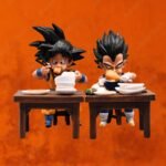 Scène Gourmande en 3D : Cette figurine met en scène Goku et Vegeta, non pas en pleine bataille, mais en train de partager un repas copieux. Les détails minutieux capturent l’expression joyeuse sur leurs visages alors qu’ils dégustent un festin Saiyan. Des assiettes débordant de plats délicieux, des verres levés pour trinquer, cette scène en 3D donne vie à l’idée même d’un diner Saiyan.