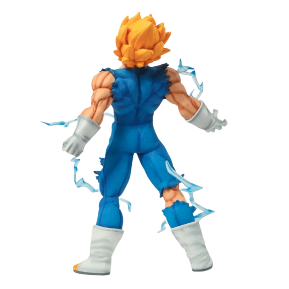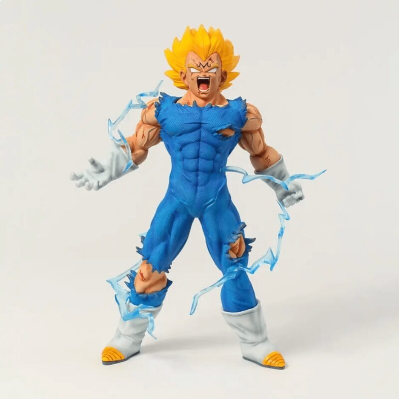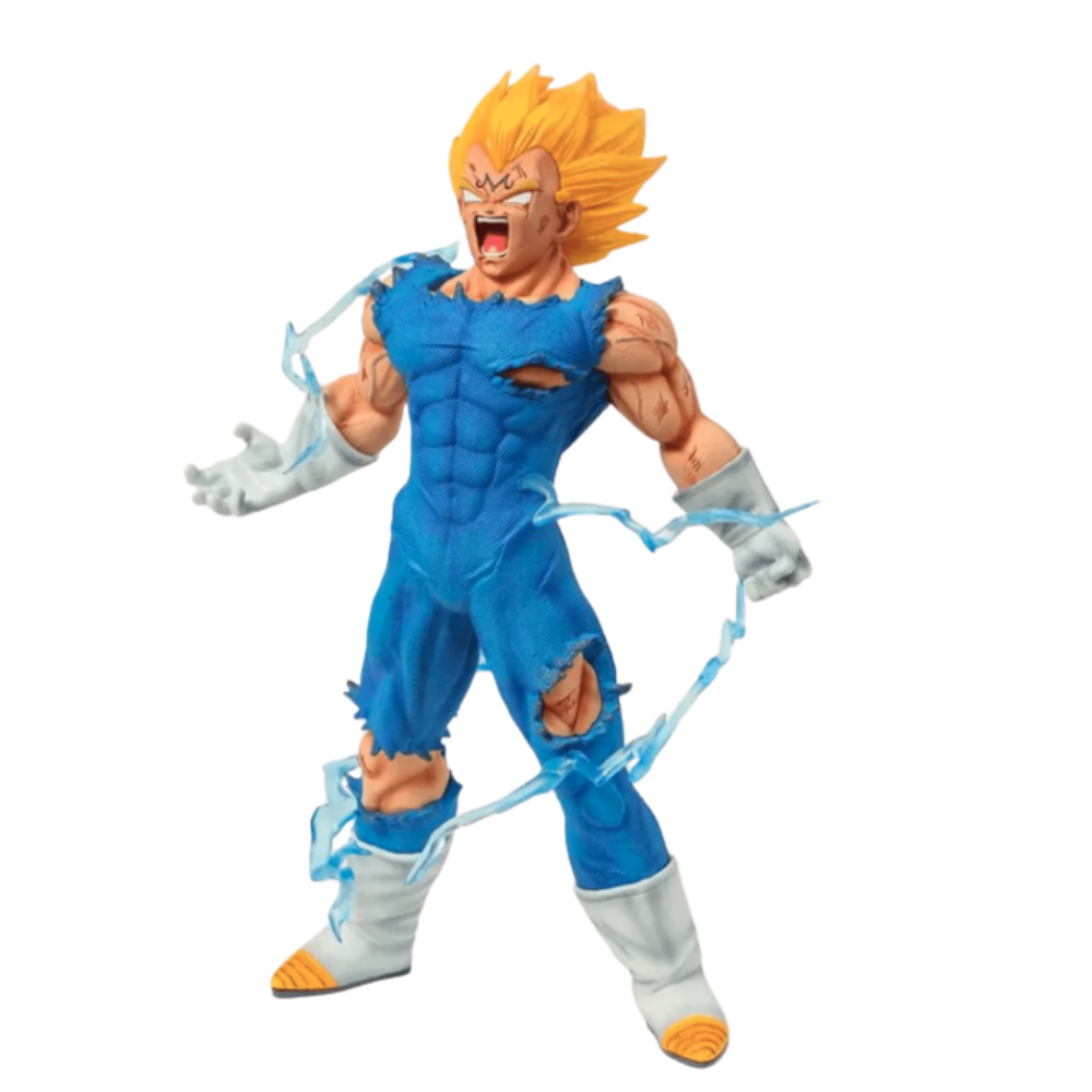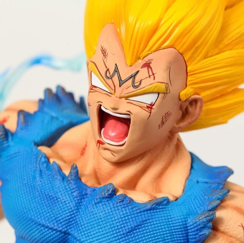 Cette figurine incroyablement détaillée représente Vegeta au moment où il décide de se sacrifier pour détruire Majin Buu. La deuxième tête de Vegeta avec des cheveux LED reproduit fidèlement la scène épique où il accumule son énergie pour un acte héroïque. Les expressions du visage et la pose dramatique de Vegeta sont saisissantes de réalisme.