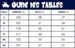 Référez-vous au guide des tailles ci-dessous. Il est conseillé de prendre 1 taille au-dessus de votre taille habituelle. NB : il s’agit des mesures du produit (qui est extensible), et non de vos mensurations !