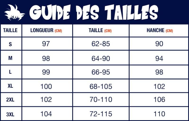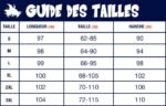 Référez-vous au guide des tailles ci-dessous. Il est conseillé de prendre 1 taille au-dessus de votre taille habituelle. NB : il s’agit des mesures du produit (qui est extensible), et non de vos mensurations !