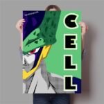 Ce Poster de Dragon Ball Z représentant Cell tirant partie des codes couleurs du style pop art apportera une certaine vitalité à ta décoration.