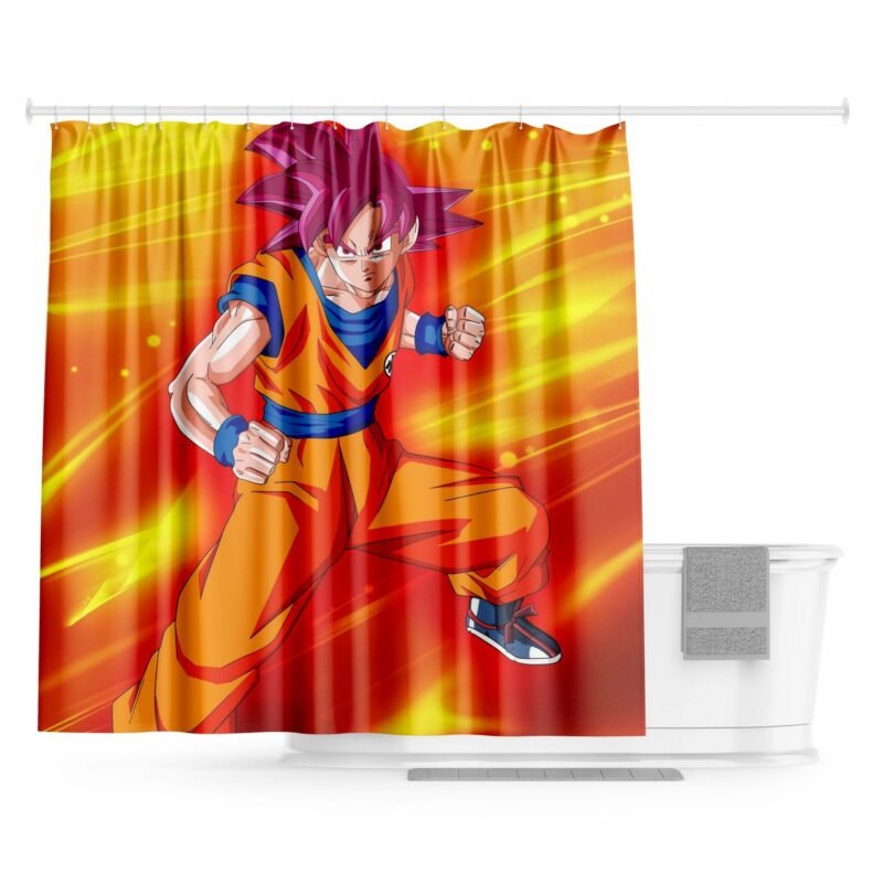 Garde ta salle de bain propre et évite trop d’éclaboussures en optant pour ce Rideau de Douche Dragon Ball aux allures de Goku SSJ God !