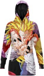 Soucieuse d’être féminine même en hiver et malgré ta passion pour le manga DBZ ? Opte pour cette Robe Pull/Sweat Gogeta SSJ3 et valorise tes courbes !