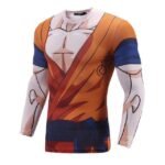 Adopte un look de saiyan surpuissant à la salle grâce à ce T-Shirt Compression Long au design de la tenue de Goku dans la série Dragon Ball Super !