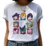 Terme employé principalement pour des personnages d’animes et de mangas, craque pour les personnages en version “Chibi” dessinés sur ce T-Shirt Dragon Ball Z.