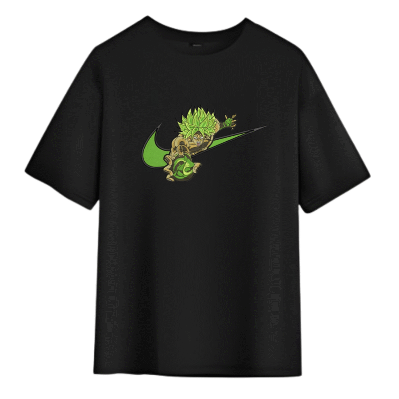 - Iconique Swoosh : L’intégration habile du swoosh de Nike dans la scène de Broly crée une pièce iconique, fusionnant la mode streetwear avec l’univers Dragon Ball.