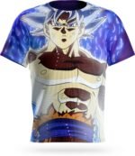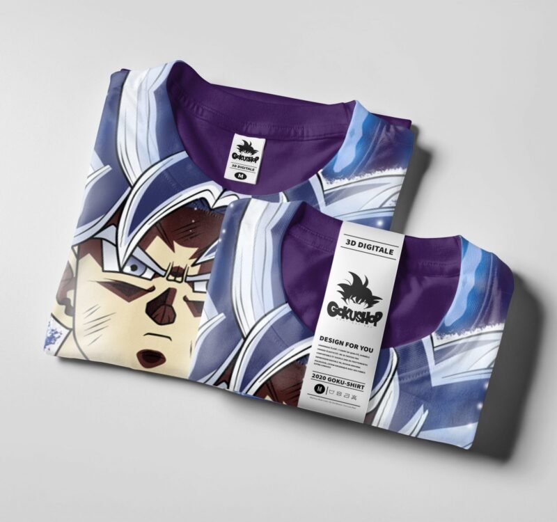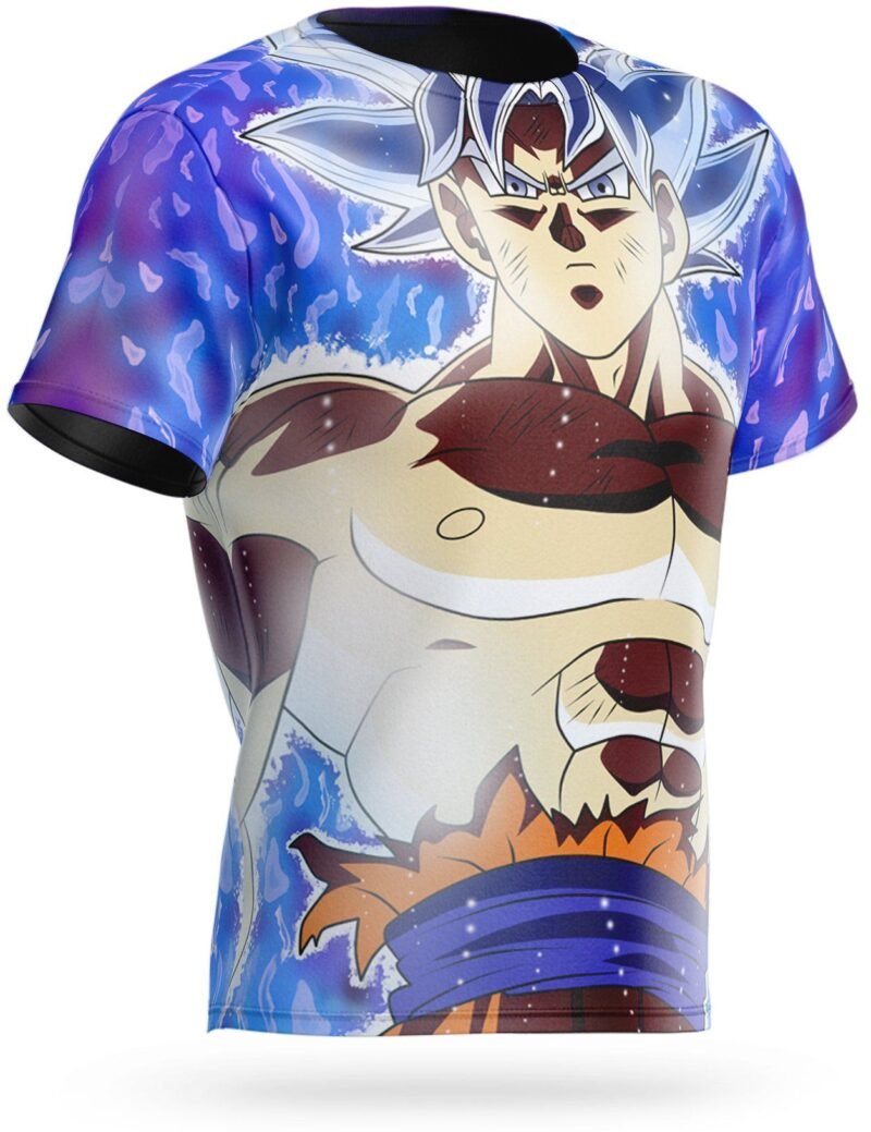 T-Shirt Dbs de qualité supérieure floqué de Goku en mode Ultra Instinct Maitrisé. “Migatte No Gokui” est un état divin acquit par ce guerrier, après avoir maîtrisé le début d’éveil des mouvements instinctifs.