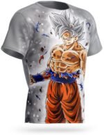 Goku en Pleine Splendeur – Le visuel de ce t-shirt est une représentation parfaite de Goku dans sa forme la plus puissante. Ses cheveux sont d’un argent brillant, signe indiscutable de son contrôle total de l’Ultra Instinct. L’aura qui l’entoure est une manifestation de sa maîtrise ultime de cette technique de combat.