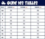Référez-vous au guide des tailles ci-dessous. 1 taille au-dessus est un gage de sécurité. NB : il s’agit des mesures du produit, et non de vos mensurations !